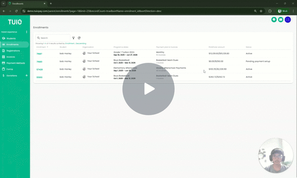 To take care of a past due payment, first log into your TUIO account and click on the Enrollments tab.